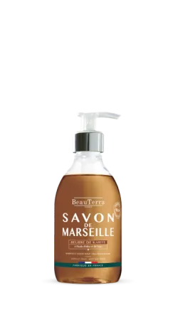 Traditionelle französische Flüssigseife aus natürlichen Ölen und angereichert mit Glycerin für sanfte Reinigung und Hautfeuchtigkeit.