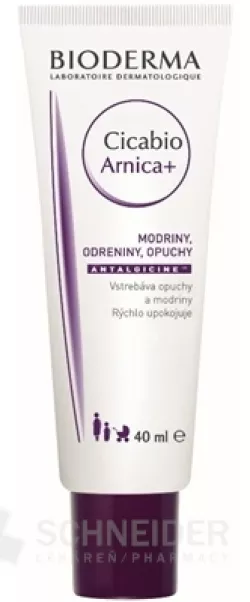 Ein Produkt mit cremiger Textur, das sich zur Anwendung bei Prellungen, Schürfwunden und Schwellungen eignet. Es enthält den innovativen Wirkstoff Antalgicin TM , Extrakt aus Arnika und Apigenin, Zink.