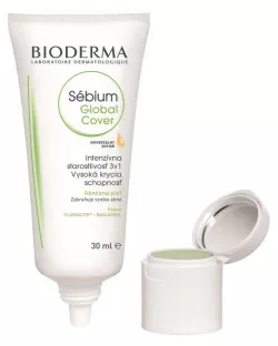 Es ist das einzige, das weltweit alle Ursachen und Folgen von Akne löst. Deckt Hautausschläge ab und verringert deren Sichtbarkeit. Ergänzt und verstärkt die dermatologische Behandlung von Akne. Abdeckender und mattierender Effekt für Damen und Herren bis zu 12 Stunden. Leichte, nicht fettende Textur für ein angenehmes Hautgefühl. Sébium Global Cover ist eine tonisierende Pflege, die dank der SeboRestore-Technologie [Fluidactiv™* Patent – Bakuchiol] an der Ursache von Hautausschlägen wirkt. Diese Technologie stellt das Gleichgewicht in der Talgzusammensetzung wieder her, stellt die natürliche Feuchtigkeitsfunktion der Haut dauerhaft wieder her und verhindert das Auftreten neuer Hautausschläge. Der universelle Farbton ersetzt die Verwendung von anderem Make-up. Das Ergebnis sind sofort abgedeckte Hautausschläge, die Haut wird vereinheitlicht. Von Tag zu Tag ist es heller und sauberer.