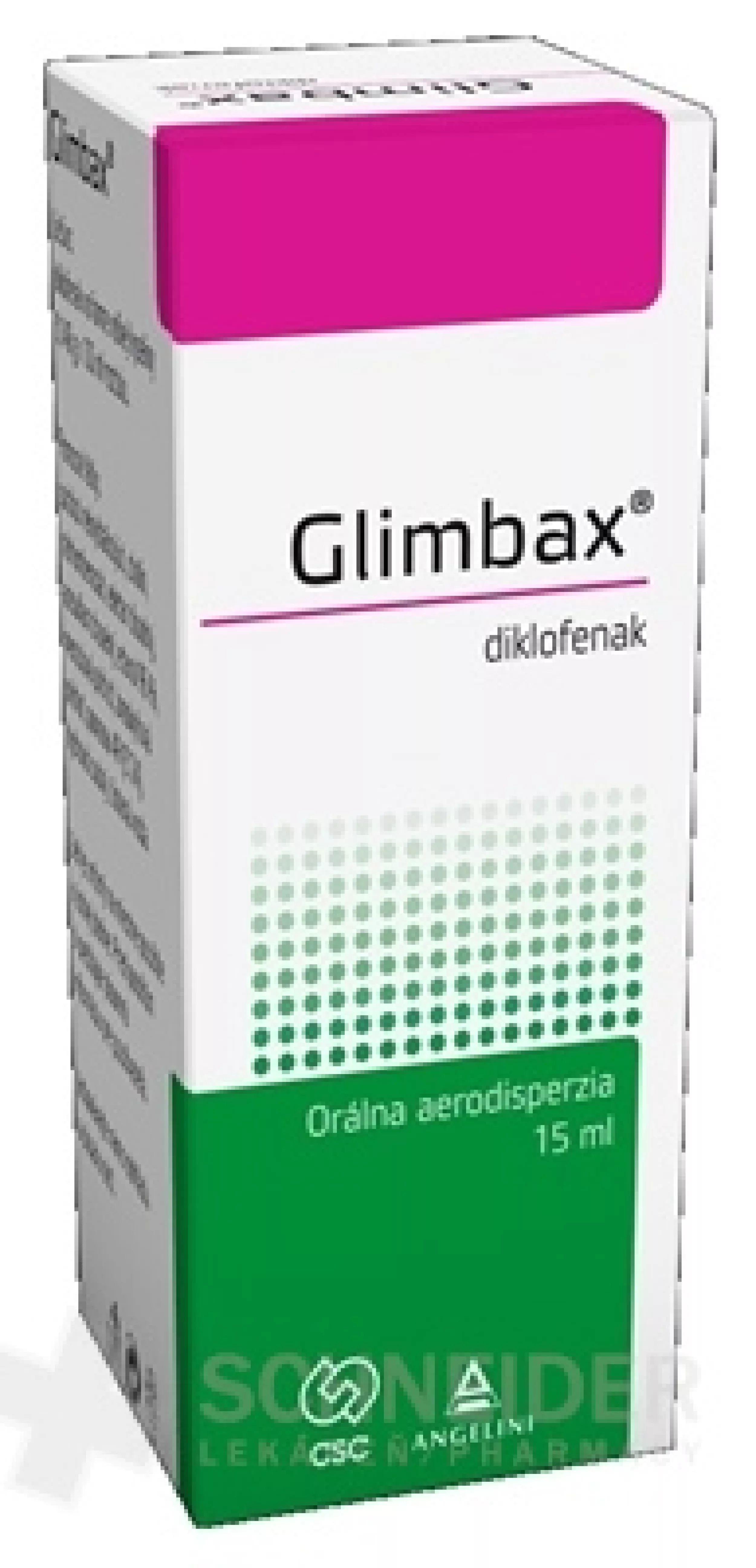 Bei systemischer Verabreichung wirkt Diclofenac analgetisch (schmerzlindernd), entzündungshemmend und fiebersenkend (fiebersenkend). Bei lokaler Anwendung, wie im Fall eines oralen Aerosols, zeigt Glimbax eine schmerzstillende und entzündungshemmende Wirkung. Glimbax wird zur symptomatischen Behandlung von Entzündungen, auch schmerzhaften, in der Mund-Rachen-Höhle (Gingivitis, Stomatitis, Pharyngitis), auch als Folge einer zahnärztlichen Therapie (Zahnextraktion oder konservative Behandlung), angewendet.