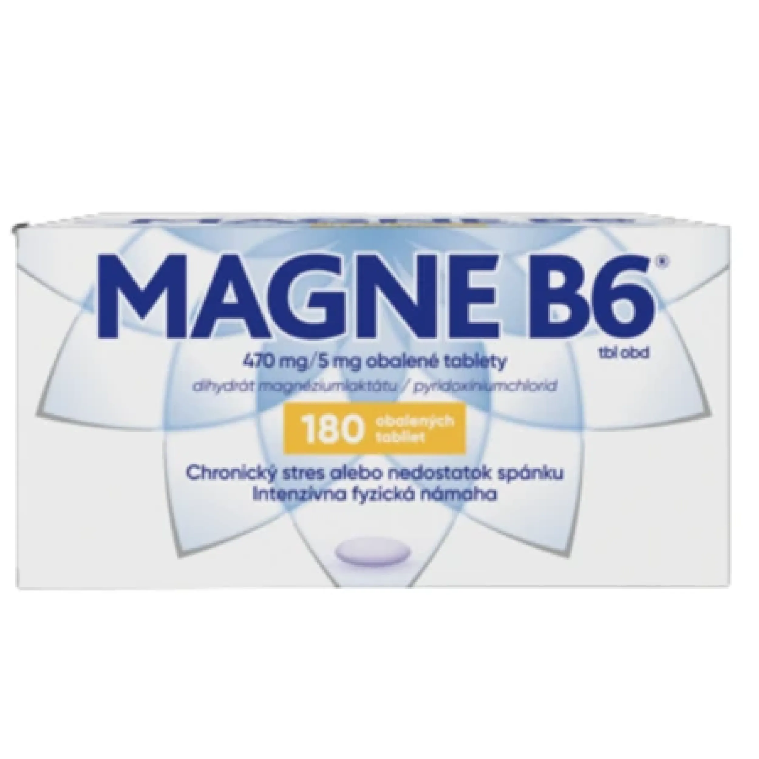 470 mg Magnesiumlactat-Dihydrat (entsprechend 48 mg Mg²⁺) und 5 mg Pyridoxinhydrochlorid (Vitamin B6). Sonstige Bestandteile: Saccharose, Kaolin, Gummi arabicum, Carbomer 934, Talkum, Magnesiumstearat, Carnaubawachs, Titandioxid (E171).