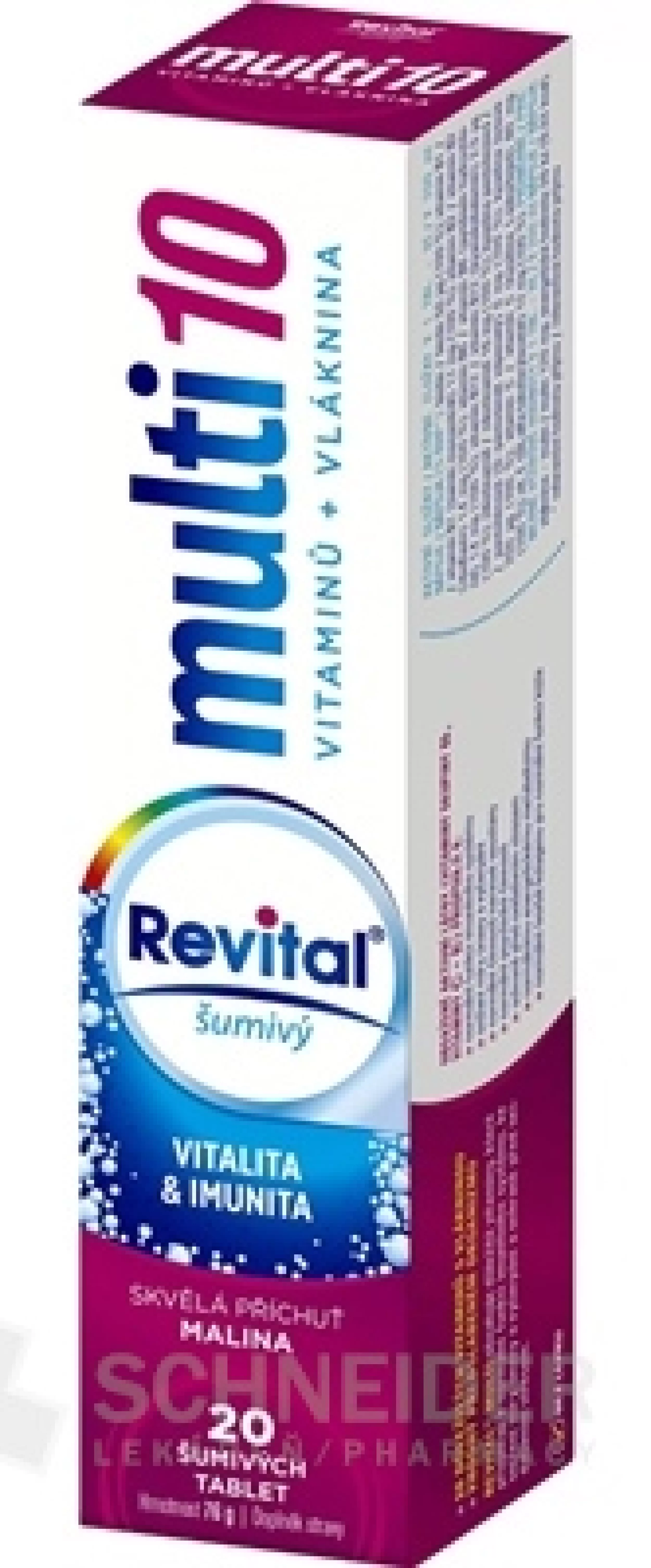 Nahrungsergänzungsmittel Revital® Multi 10 Vitamine + Ballaststoffe – Vitamintabletten mit Ballaststoffen mit Himbeergeschmack.