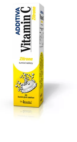 Nahrungsergänzungsmittel mit Vitamin C in Form von Brausetabletten mit Zitronengeschmack.